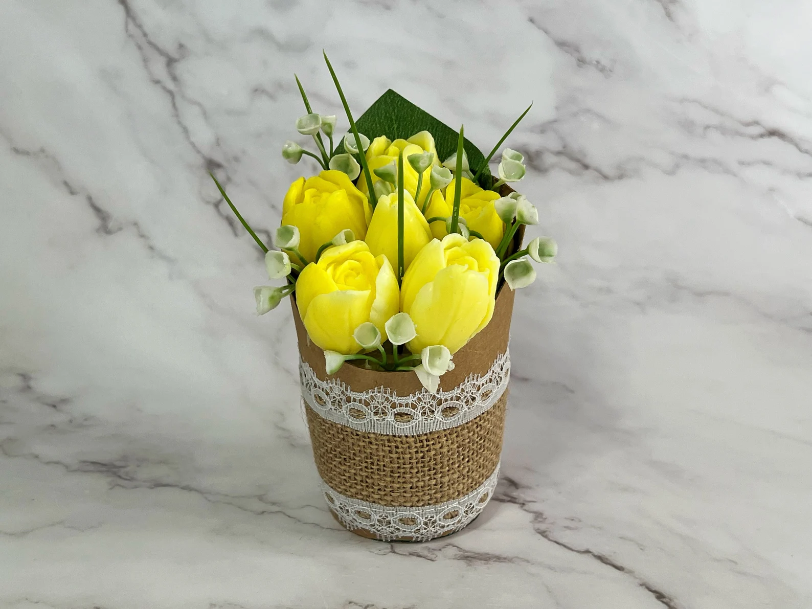Die Blumen wurden aus nachhaltigem Material hergestellt. Seifenblumen dienen dem perfektem Ersatz von echten Schnittblumen und bleiben bis zu mehreren Jahren erhalten.
